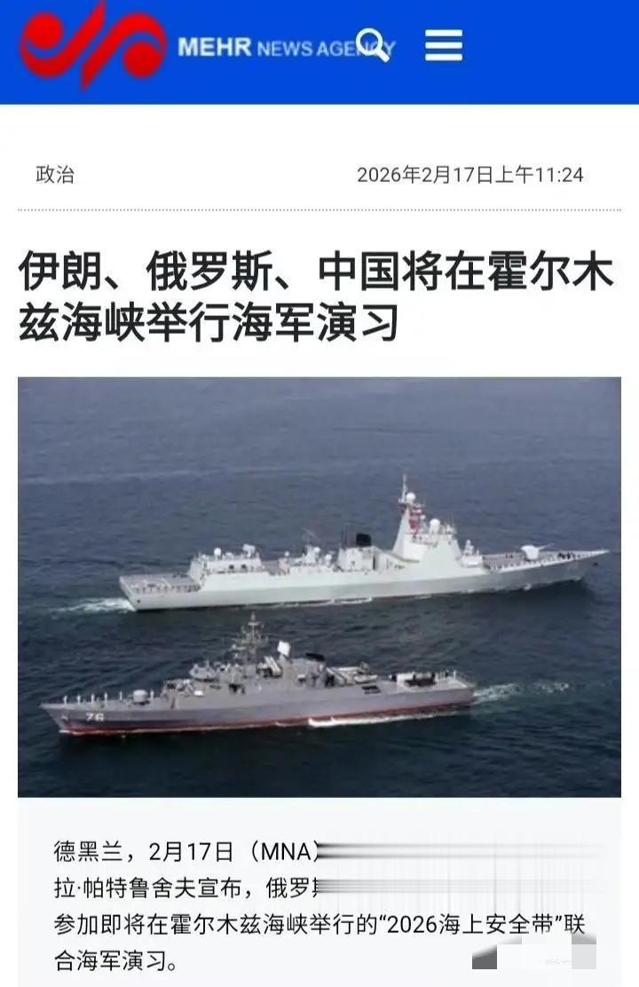 1. 伊俄先行(已官宣):根据伊朗官方媒体2月18日消息,伊俄两国海军将于19日在阿曼湾和北印度洋海域举行联合演习,旨在加强协同与维护海上安全 。这是对近期美军增兵的直接回应。